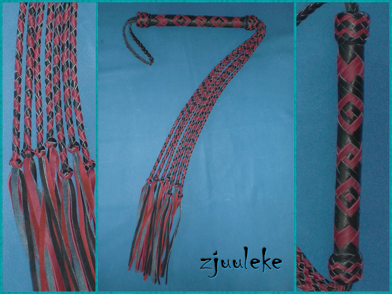 This set of whips is made for Lady Samantha by 7th & zjuuleke. De snakewhip is crafted by 7th, the floggers are zjuuleke's handiwork.